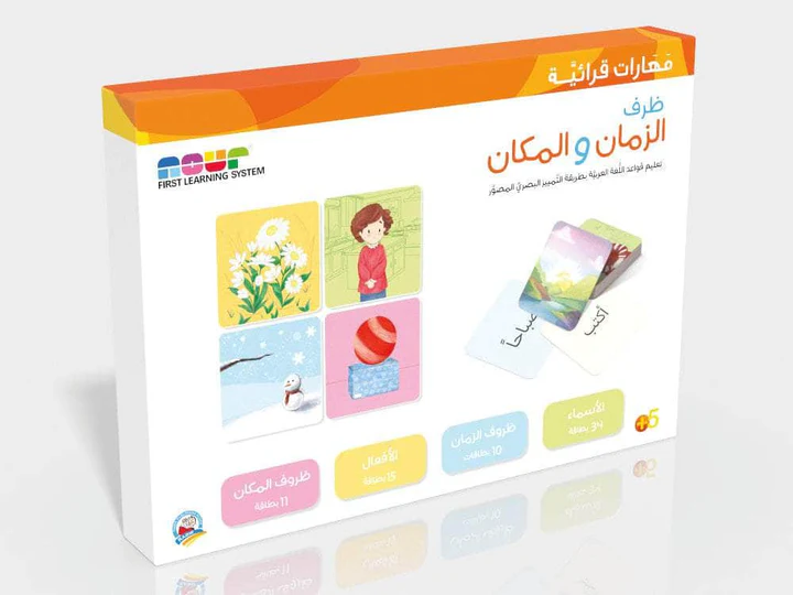 صندوق  تعليمي مميز يُعلّم الطفل مفهوم ظرف الزمان والمكان من خلال كتيبات مبسطة، وتمارين شيقة تحفز الفهم والتمييز بين الظروف بطريقة تفاعلية ومحببة.