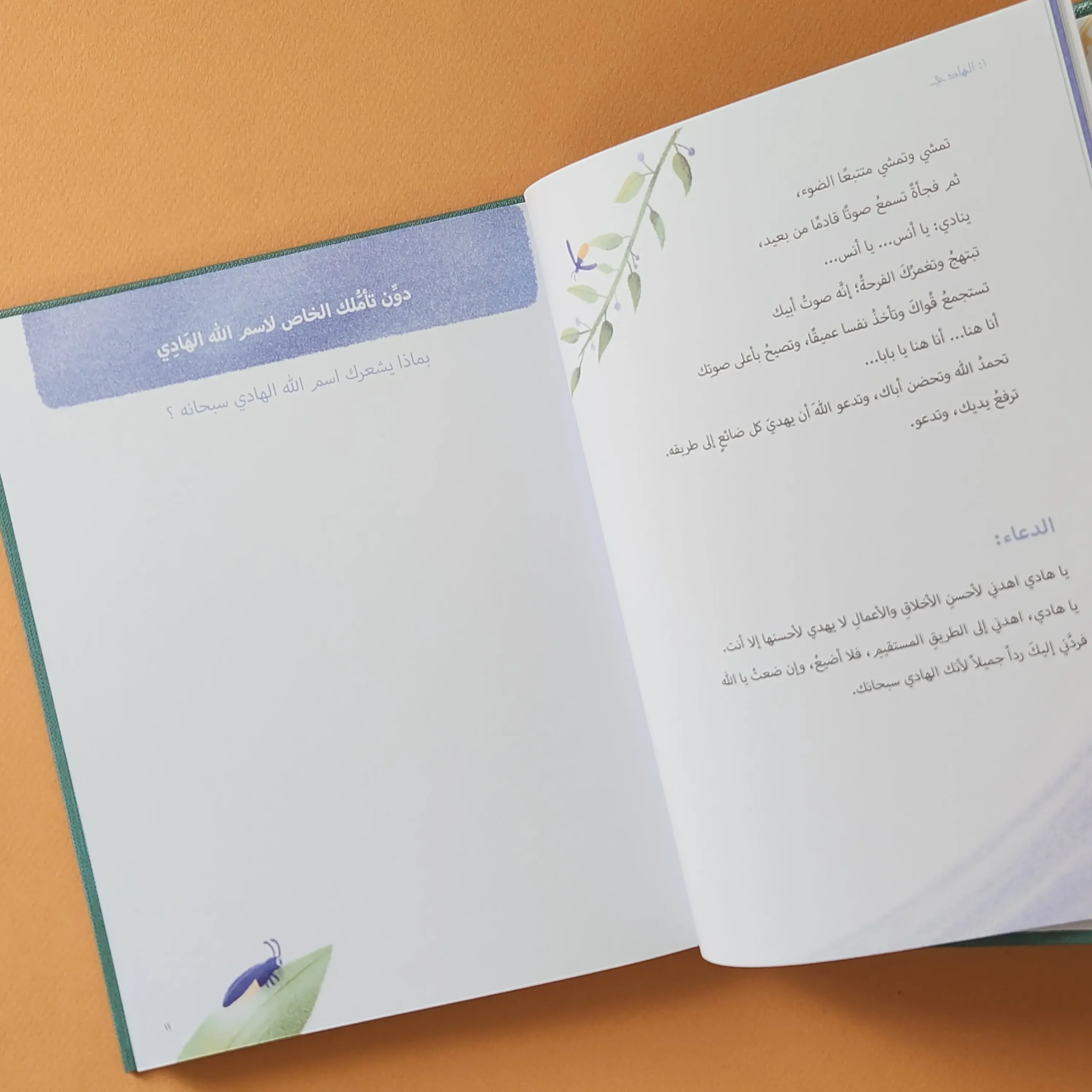 هو رحلة وجدانية وروحية تُقرب الطفل من الله عز وجل عبر الدعاء والتأمل يتذوق فيها الطفل معاني ثلاثين اسما من أسماء الله الحسنى ، تجعله يعيش معاني أسماء الله الحسنى خلال تفاصيل يومه.