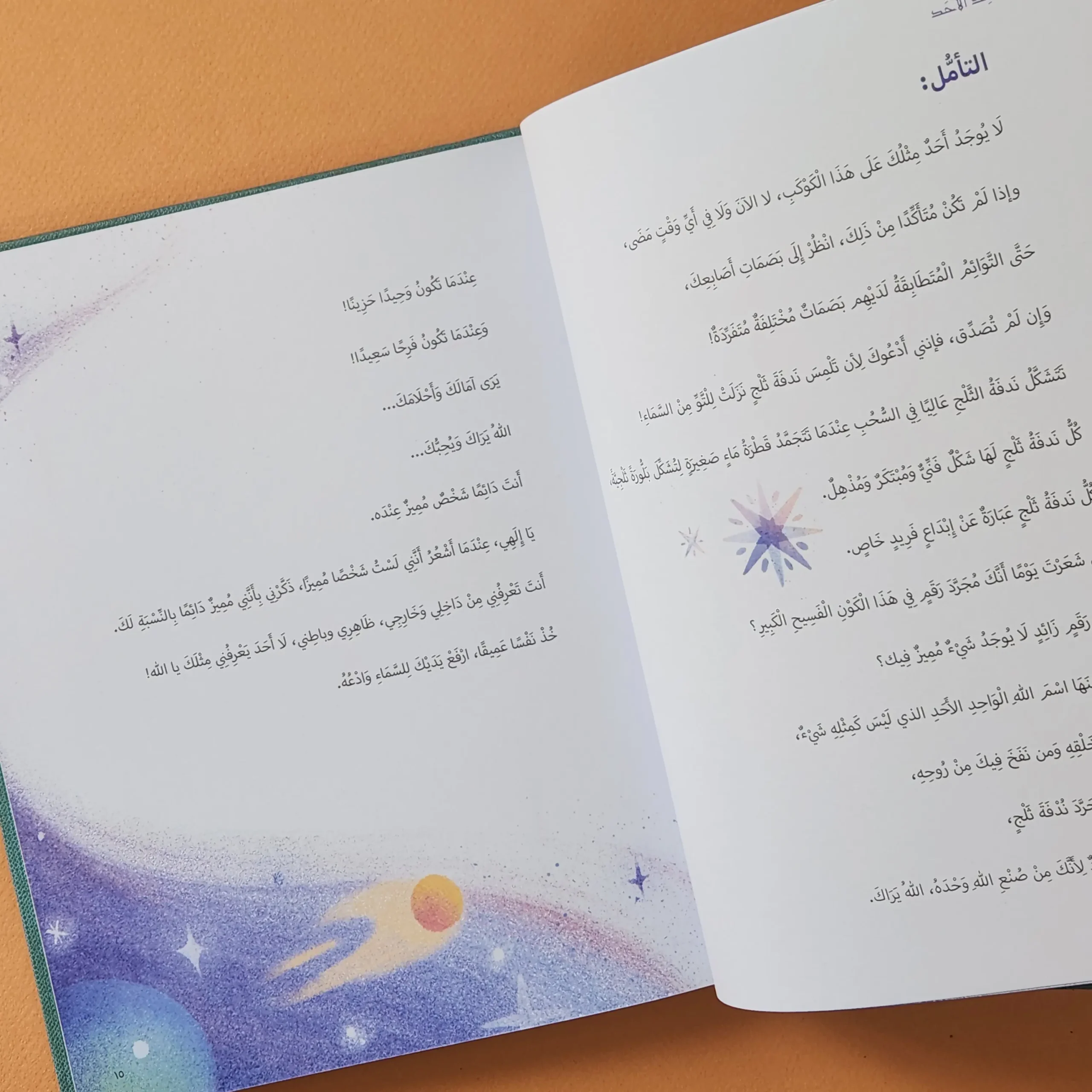 هو كتاب يفتح قلب الطفل للتفاعل والتعبير، ويمنحه تجربة شمولية تُثري عقله وروحه، وتزيده قربا وحبا وصلة بالله سبحانه وتعالى.