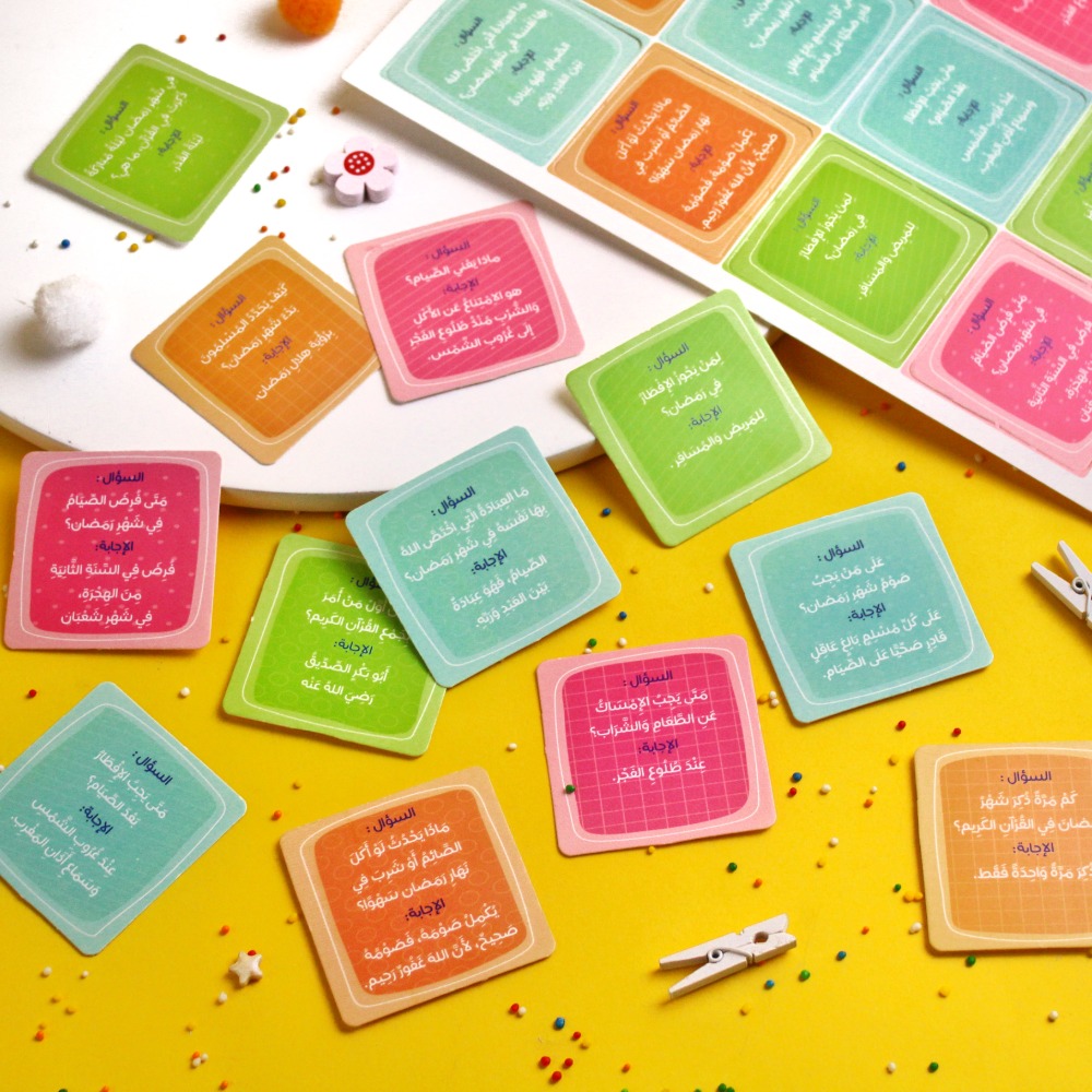 3- كروت الأسئلة: لتعليم الطفل معلومات مهمة عن رمضان والقرآن