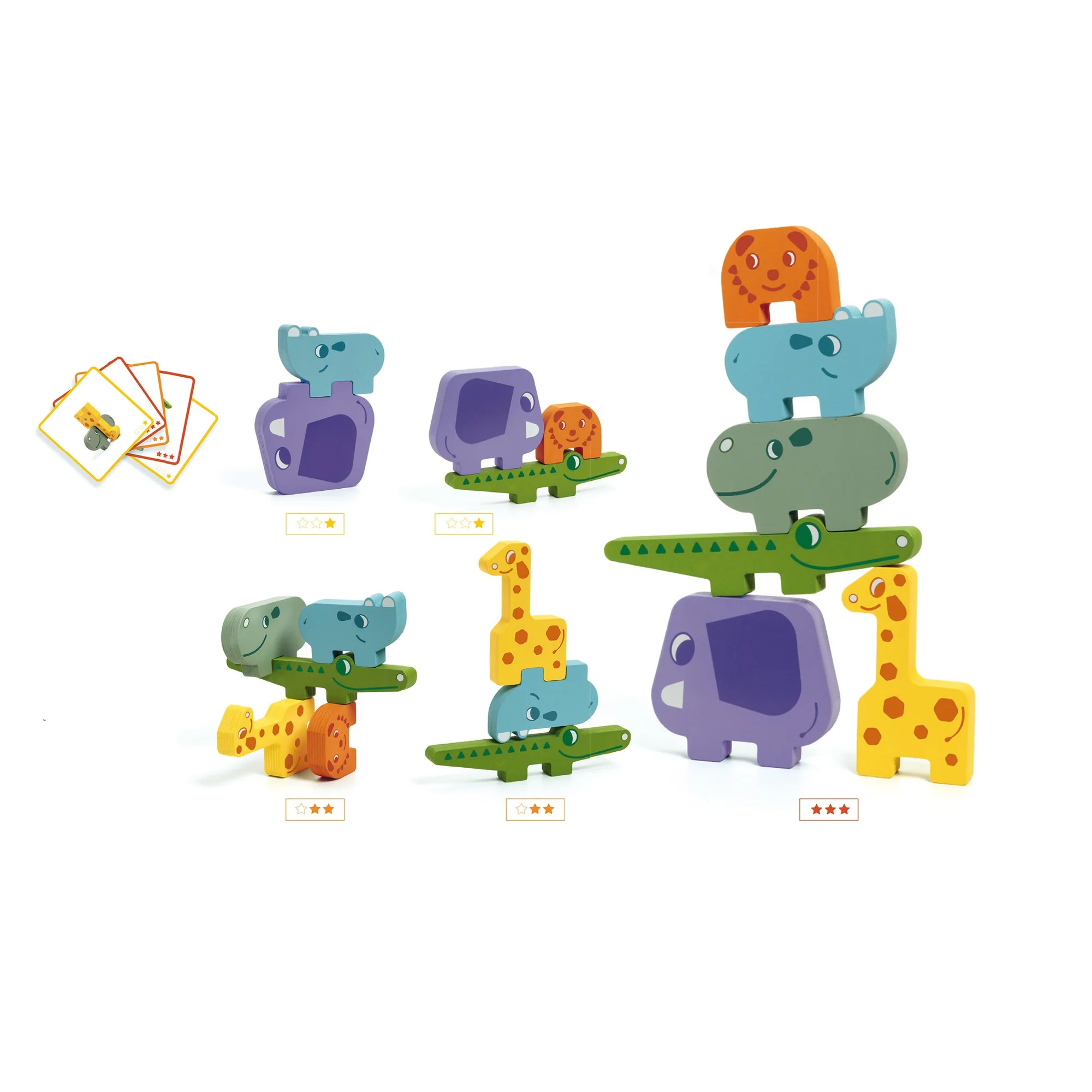 لعبة خشبية ممتعة مع قطع ملونة على شكل حيوانات. Ze Totanimo هي لعبة تنمّي التوازن والوعي المكاني لدى الأطفال. تحتوي على ستة حيوانات خشبية يمكن للأطفال اللعب بها وإعادة تكوين الأبراج كما هو موضح على بطاقات النماذج.